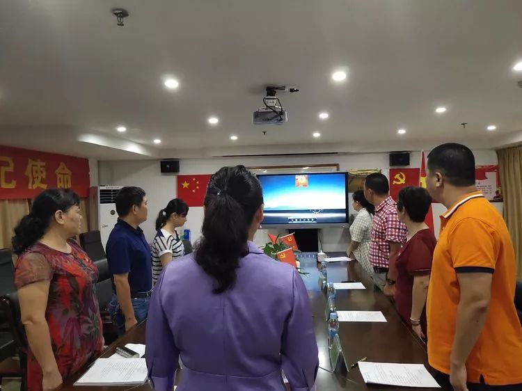 9時(shí)35分,支部大會(huì)在莊嚴(yán)肅穆的中華人民共和國(guó)國(guó)歌聲中正式開(kāi)始。全體人員一起高唱國(guó)歌。